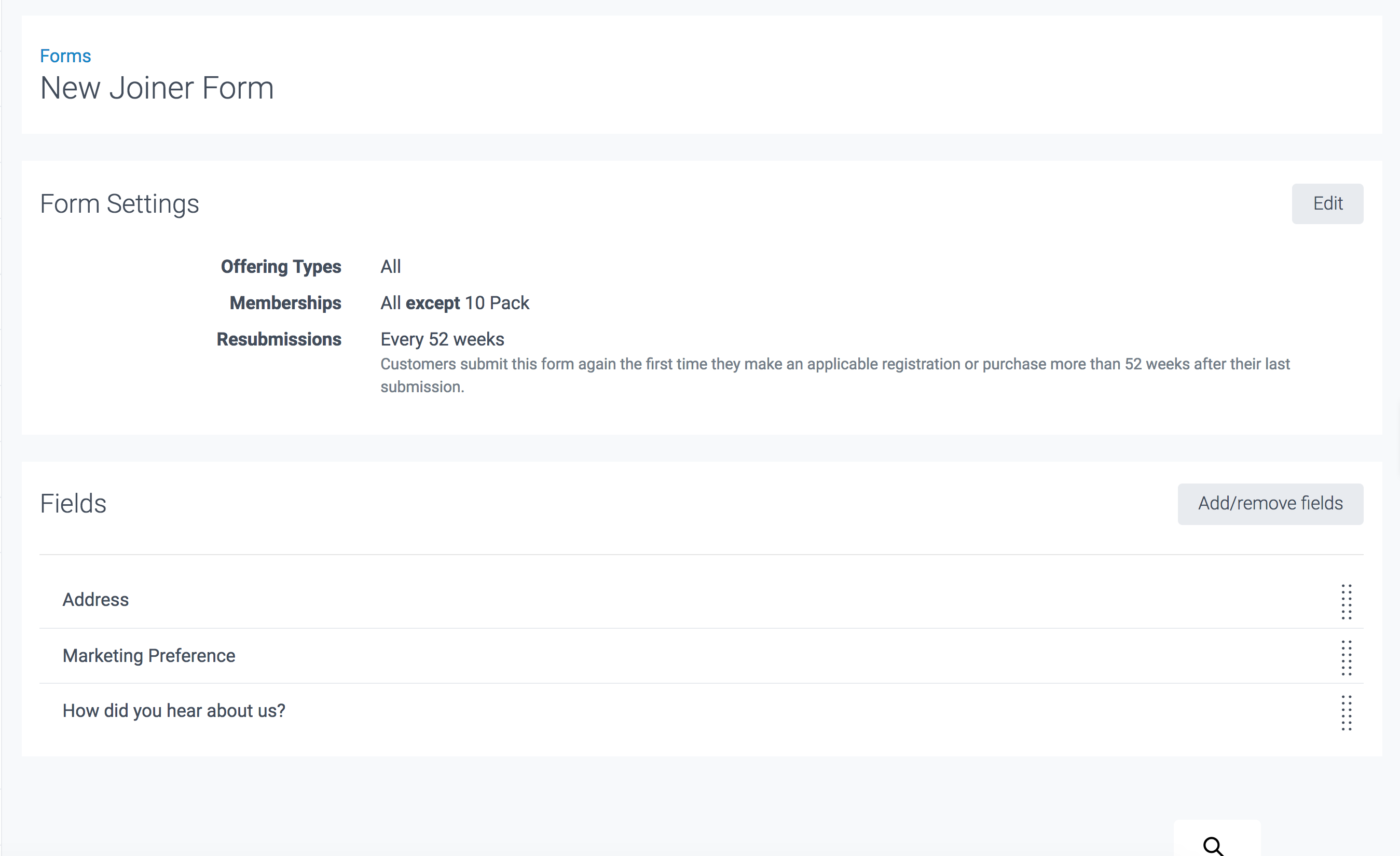 1. Forms can be configured to target specific registration or purchase types. This allows you to collect targeted information from your customers based on their activity with your business. Think, collecting certain information from customers who attend a foundations course, a pre-natal class, a personal training session, child-only classes, having a form that collects minimal information for free trial customers, and so on.
