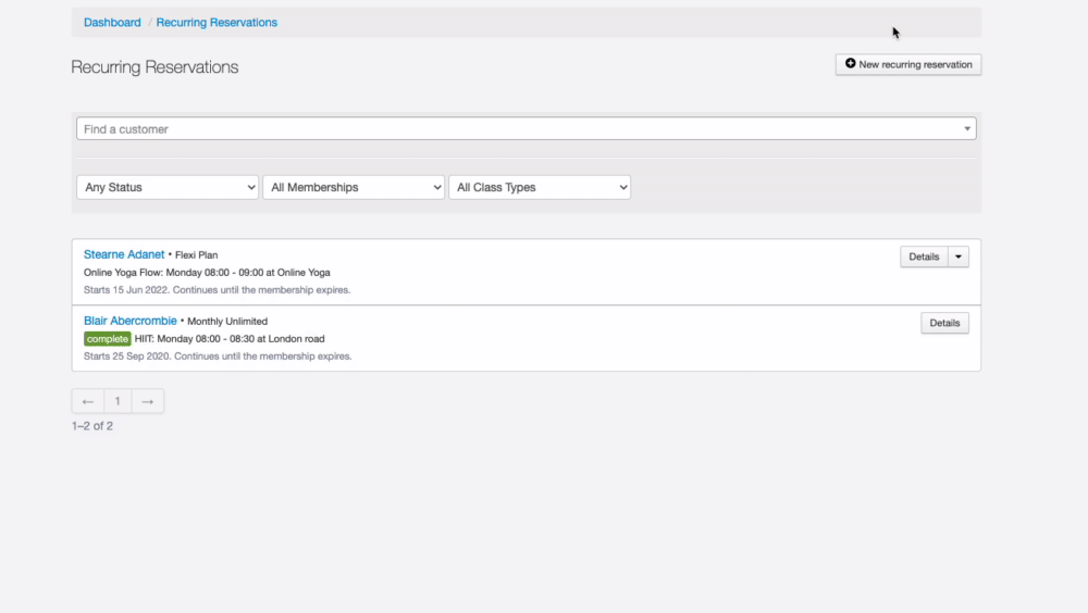 Recurring reservations allow you to book your customer into the same class week in and week out, provided they have a valid membership for the booking.