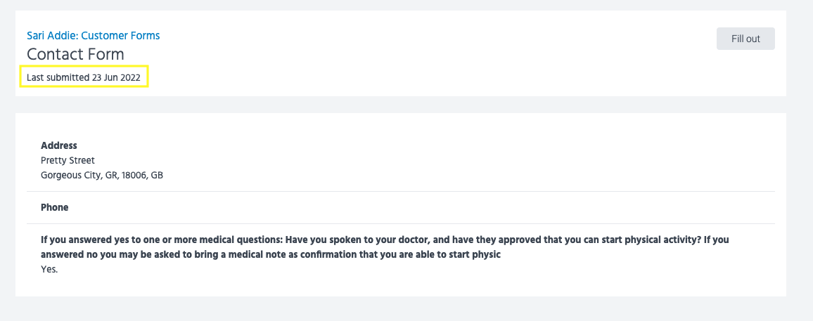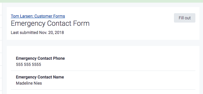 To submit a customer form from your business dashboard, click 'Fill out' next to the form's name (see screenshot above).
