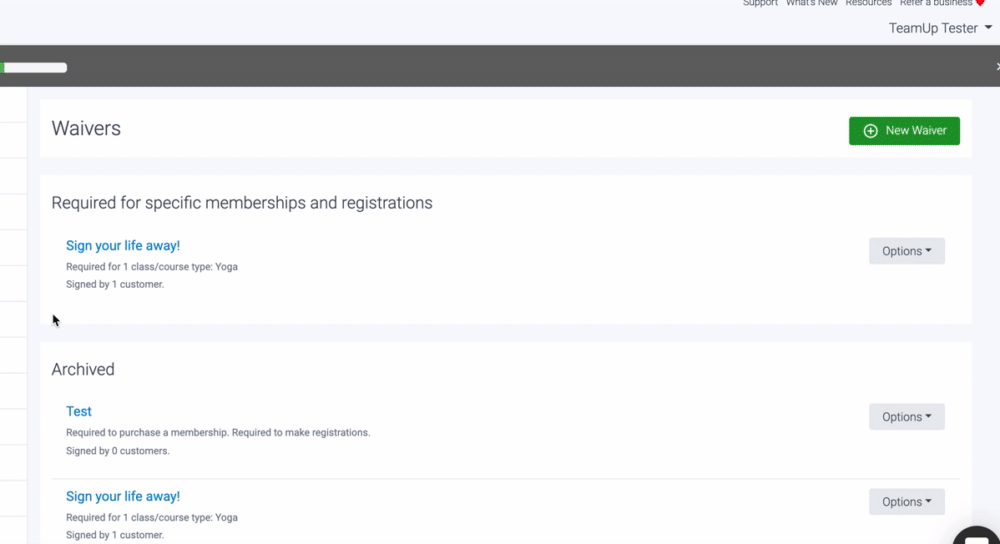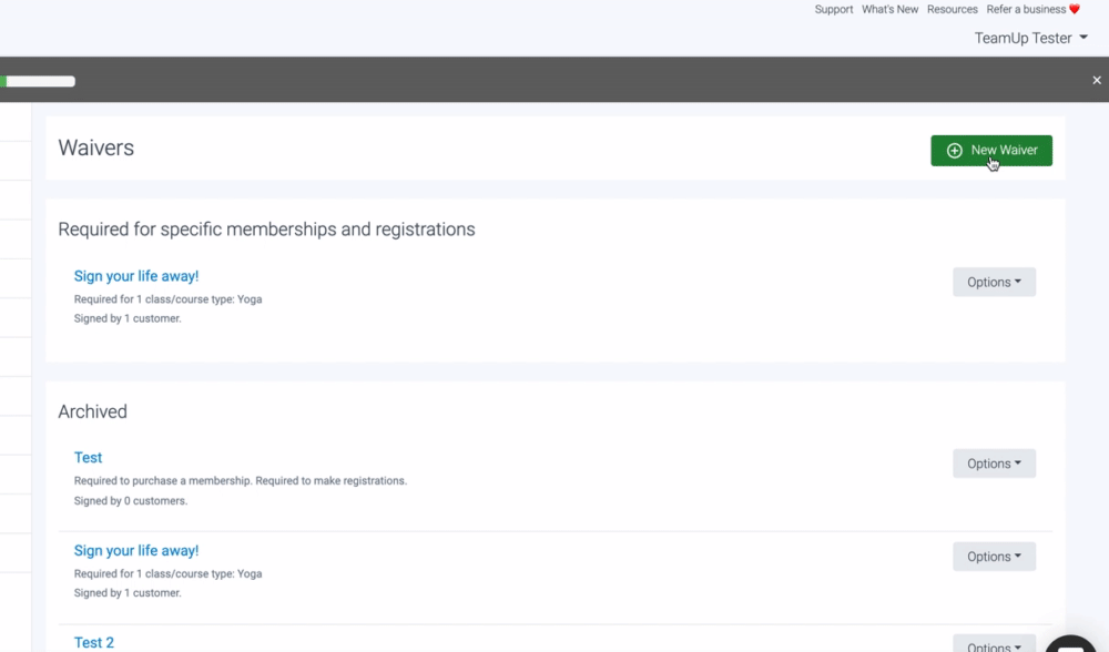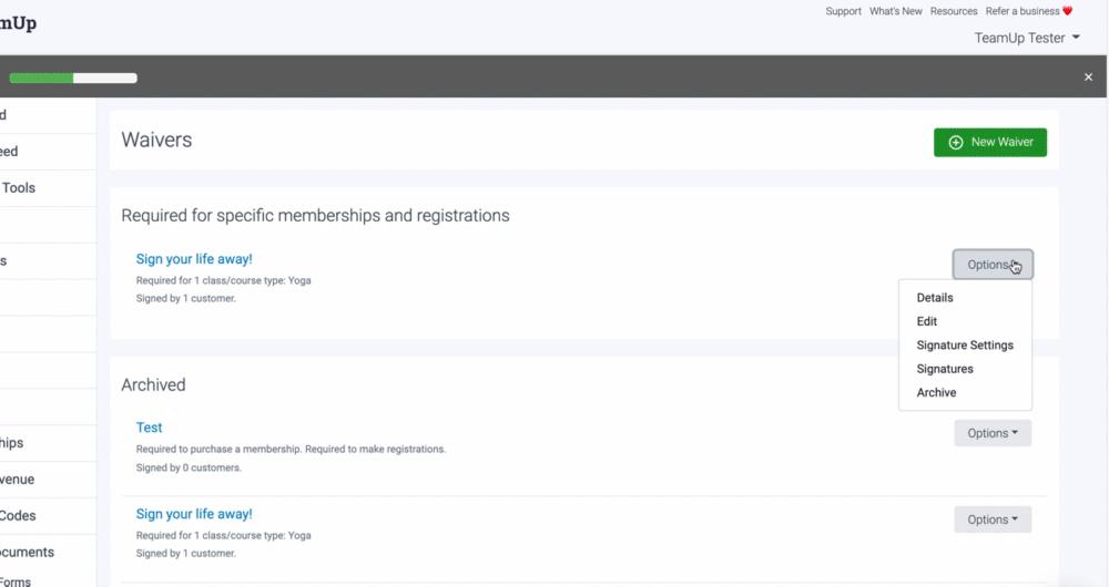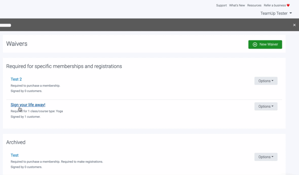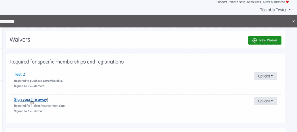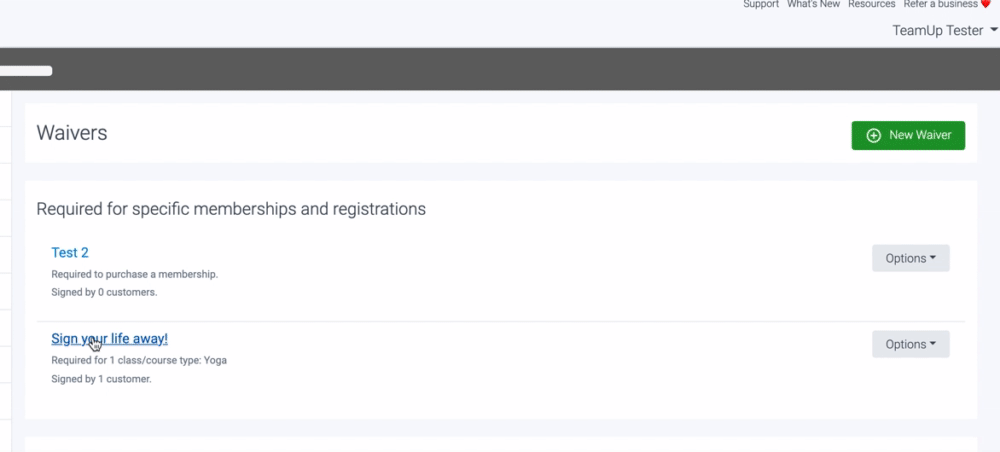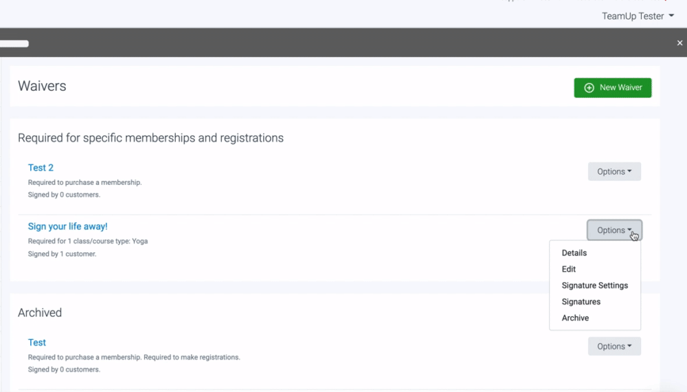 Create/edit a digital waiver on TeamUp. How to add a waiver to a membership. See who has signed your waivers.