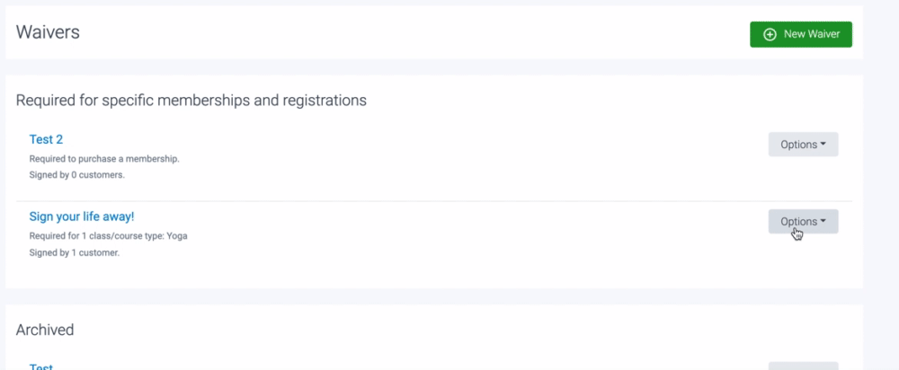 Alternatively, you can also archive a waiver from each waiver's settings.
