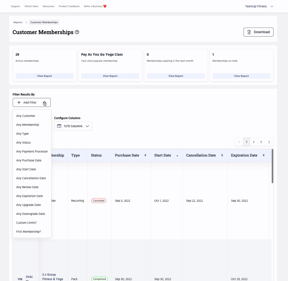And you're done! The results will display a list of memberships cancelled during the selected time period.