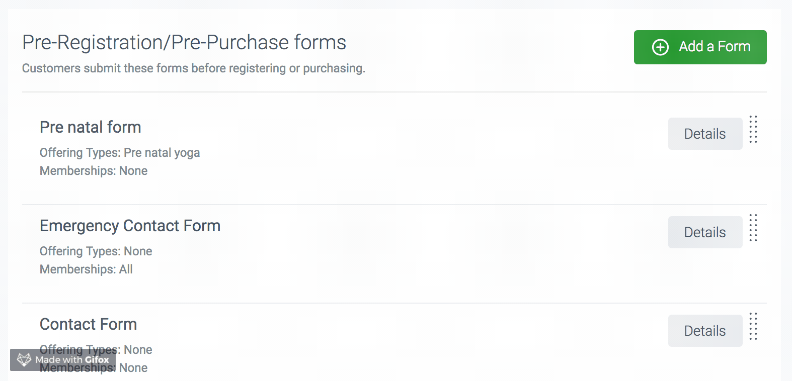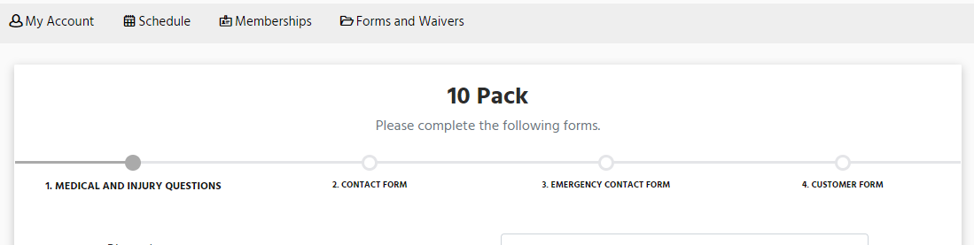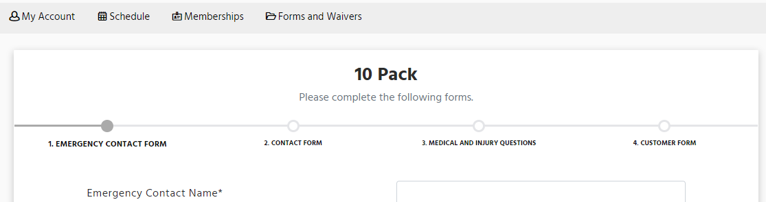 When multiple forms will be presented to a customer, you may want to ask for information in a certain order. For instance, you may wish to ask for emergency contact information before you ask for medical and injury history. To achieve this you'll reorder the forms so the first form is at the top.