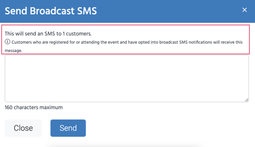 - You'll only be able to send broadcast SMS to customers who have opted into receiving this type of SMS. The customer counter at the top of the modal reflects this.