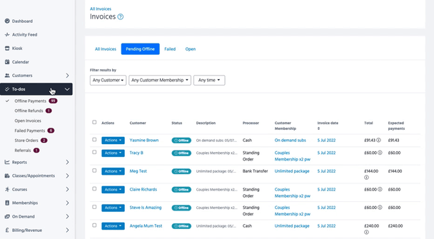 Important! Please note that only pending offline recurring membership payments can be converted to an online bill. Although the 'Convert to bill' option shows up for one-off payments too, it's not available - we'll be removing the option from these payments in a future update.