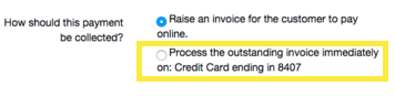 If the customer has stored payment details, you'll be able to process the payment immediately against any stored payment details associated with the membership.