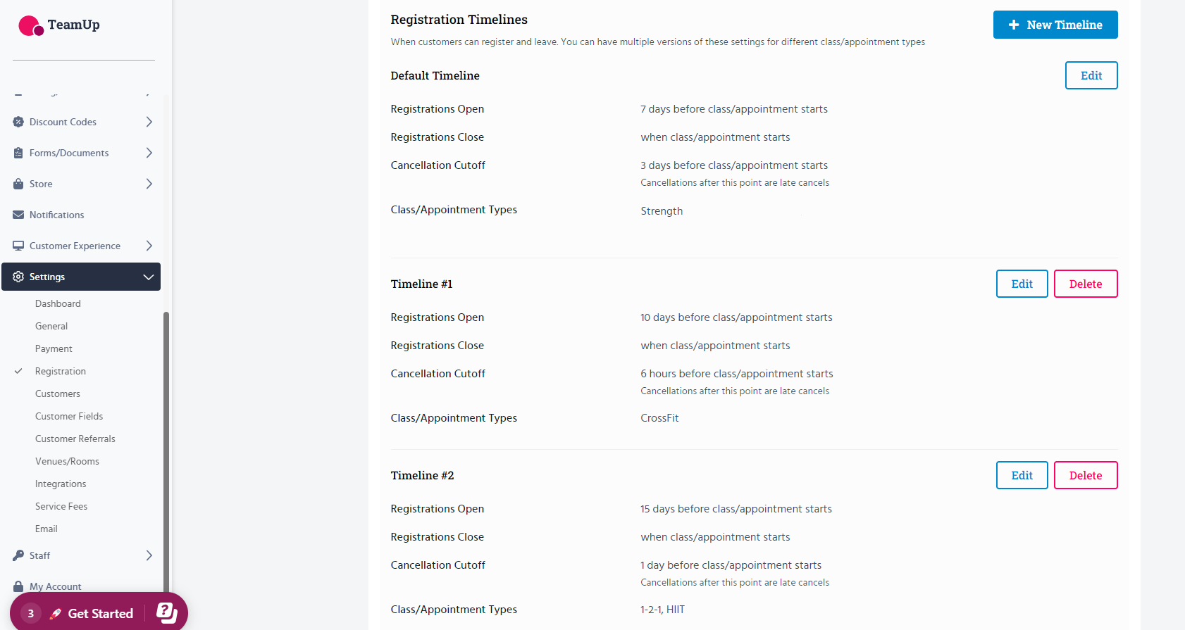 Note: Since timelines also include the registrations open and close settings, you would need to either edit an existing timeline and add the class type to it, or create a new timeline if you need an all-new settings combo.