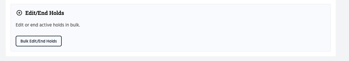 If you need to edit an existing hold to change the end/start date to today, or to a different date, please see How to edit or end holds in bulk or How to edit or end holds individually.