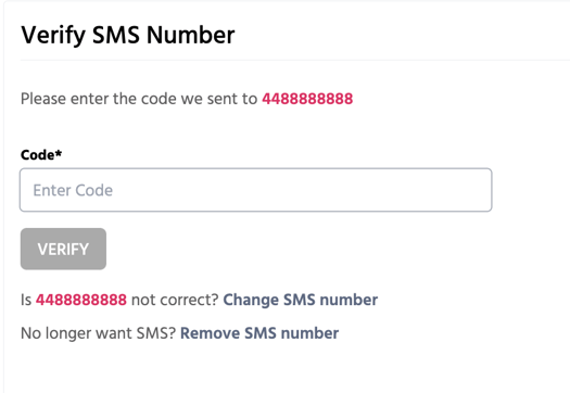 Enter the code you received to the SMS number you entered, and click verify to confirm the activation of SMS.