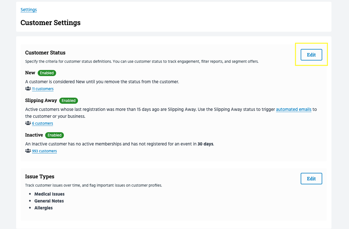 To do this head to Settings >> Customers and click 'Edit' beside Customer Status.