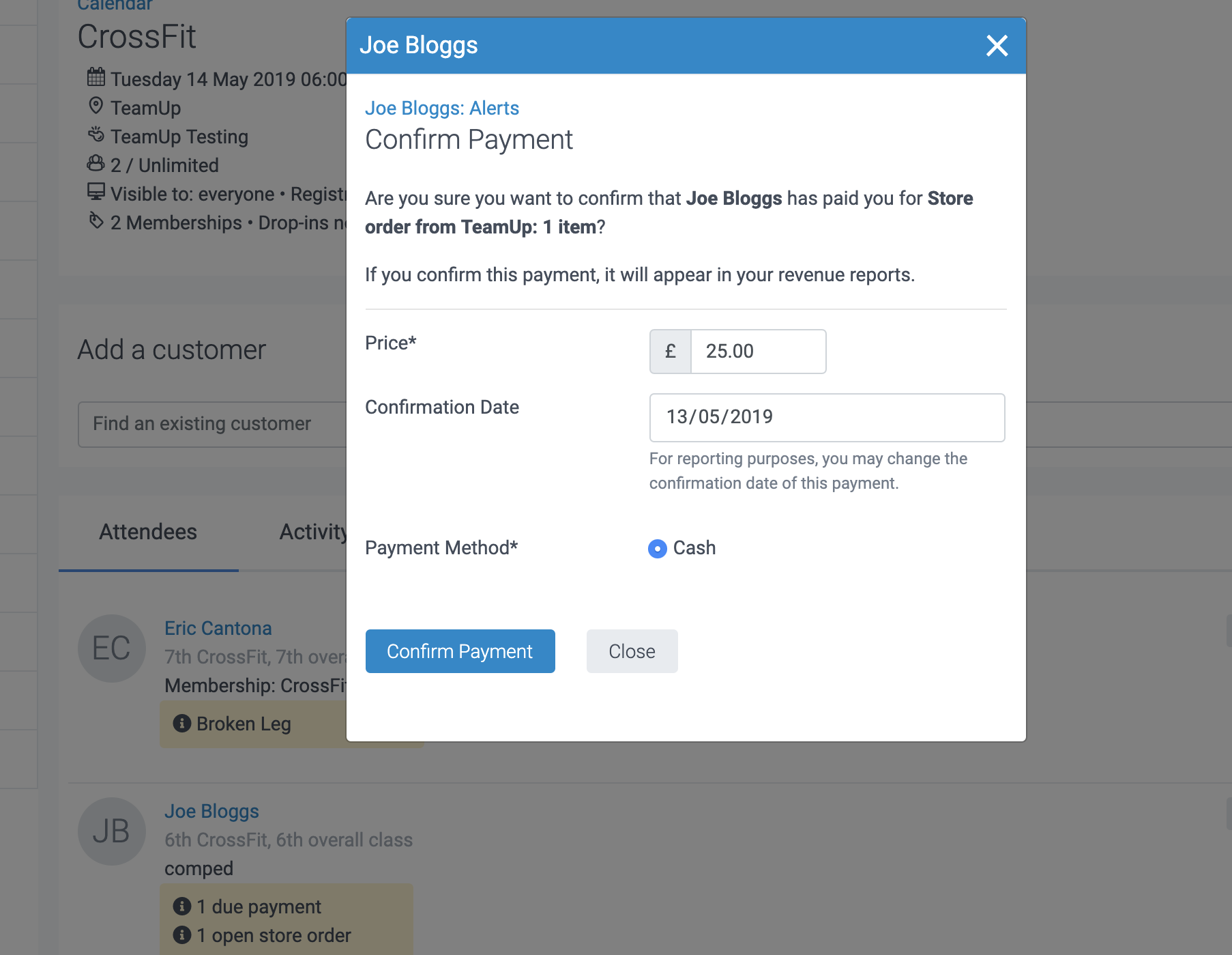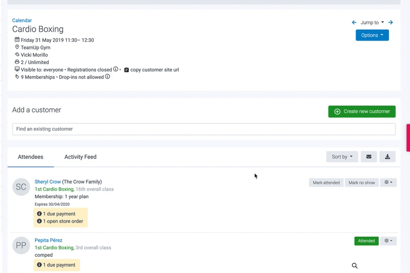 Store items can be actioned directly from the class attendance lists.