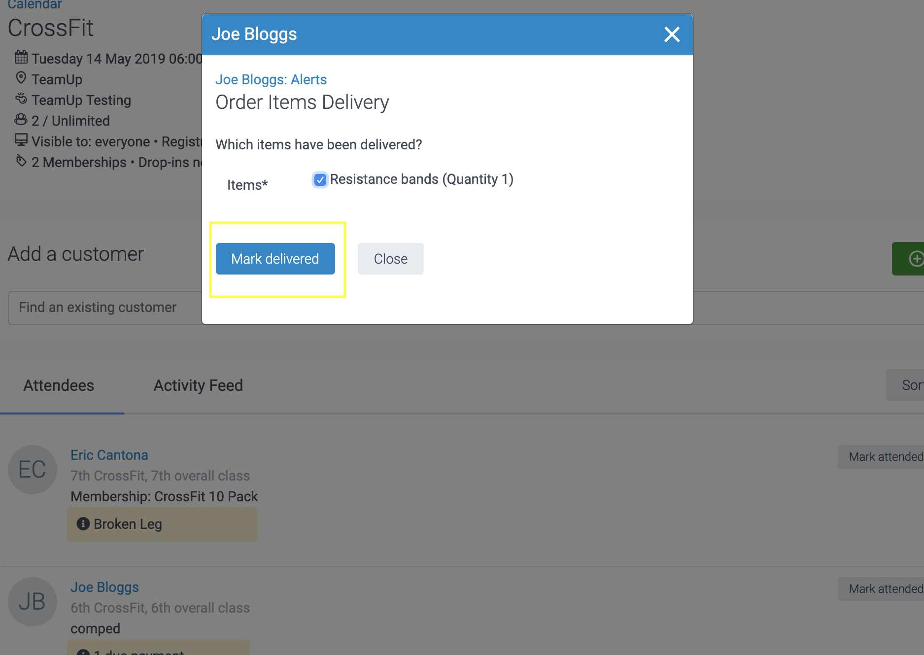 Utilise this feature to confirm payments and mark items delivered, when checking off your attendees, without having to navigate to your store.