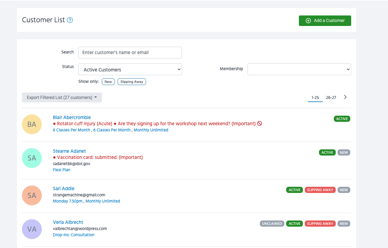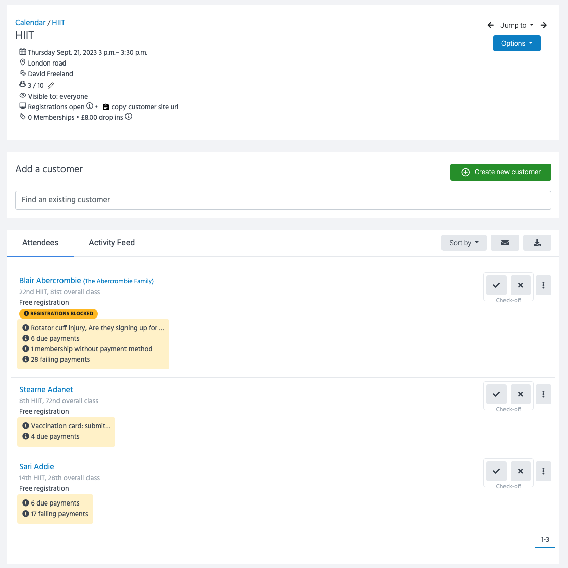 💡Please note that blocking a customer will not remove them from any previously booked classes.