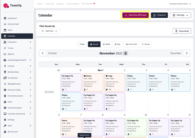 ✍️ If you're just getting started with TeamUp, see How to set up a class for details on how to create classes and add them to your calendar.
