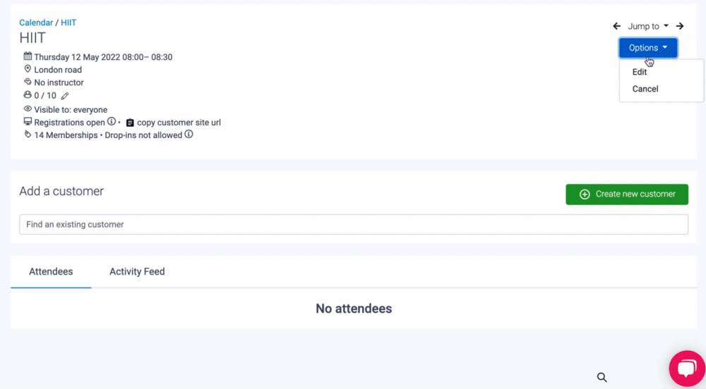 Let's say that you have a Kettlebells Class Type, with a repeating schedule on Mondays, Wednesdays, and Fridays and that you'd like to schedule a special one-off Kettlebells class on Thursday, 2nd June, and allow customers to start booking immediately.