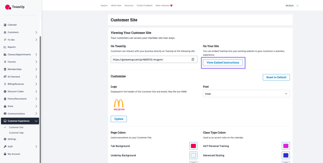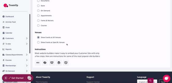 *Are you working with a developer? You can create a staff account and limit their permissions to give them access to this section only on TeamUp.