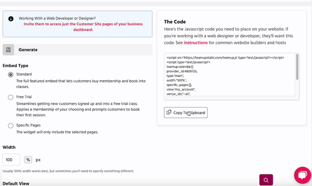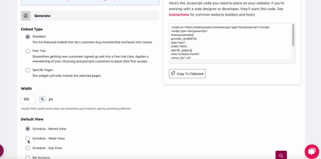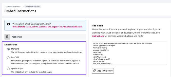 Here you'll need to choose your embed type, select your desired configuration options, and copy the resulting embed code, which you'll then need to paste into your website.