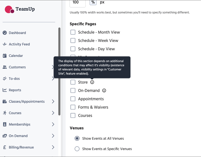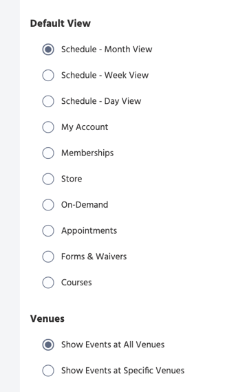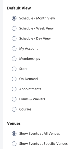 You can also decide if you want to show events happening in all your venues or specific venues.