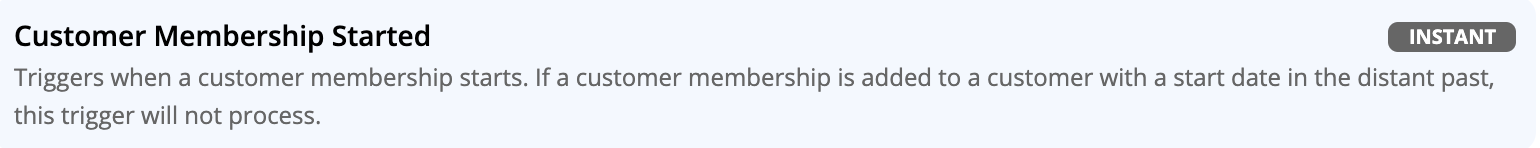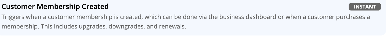 Customer Membership Created runs when a new membership is purchased by a customer or added from the business account.