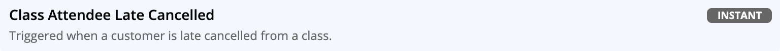 Class Attendee Late Cancelled runs when a customer late cancels from a class or appointment, or you remove them from a class/appointment and mark them as a late cancel.