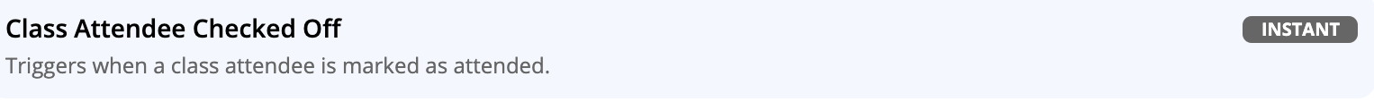 Class Attendee Checked Off runs when a customer is marked as attended by an instructor or another staff member.