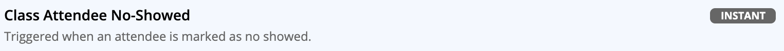 Class Attendee No-showed runs when a customer is marked as a no-show by an instructor or another staff member.