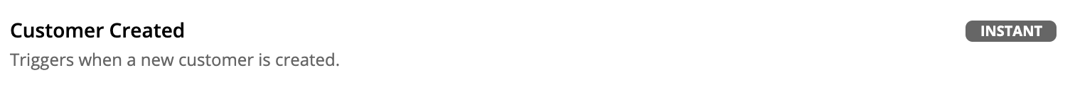 Customer Created is very similar to Customer Updated with the exception that it just runs once when a customer is created. The set of data that is sent also similarly includes: