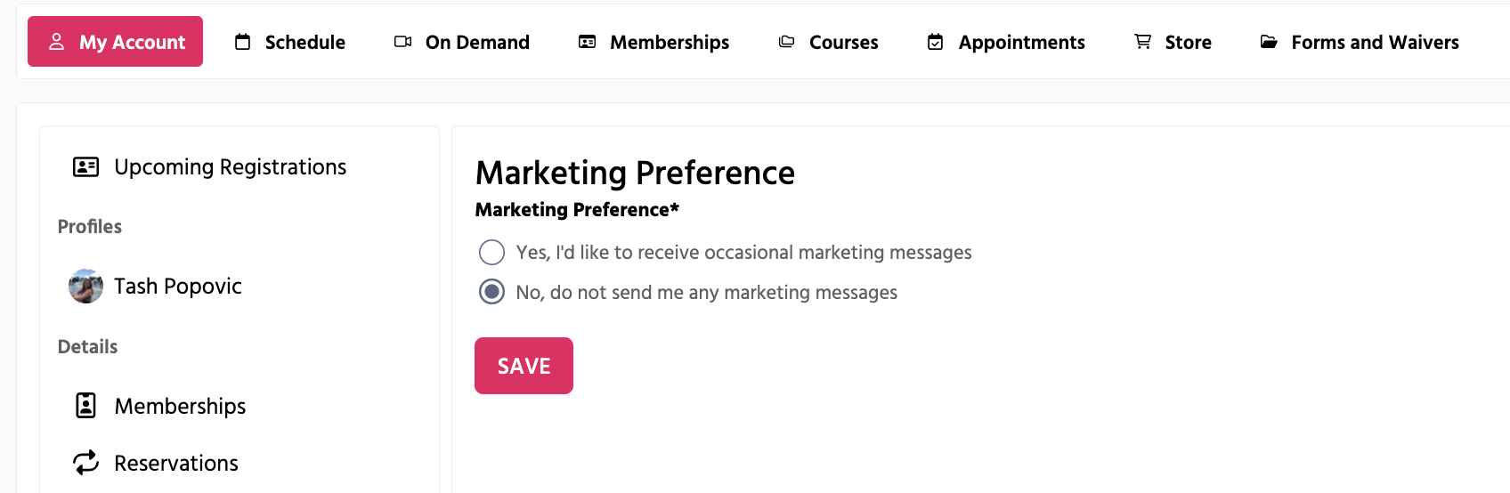 The fitness business you attend can enable a feature to collect your marketing preferences.