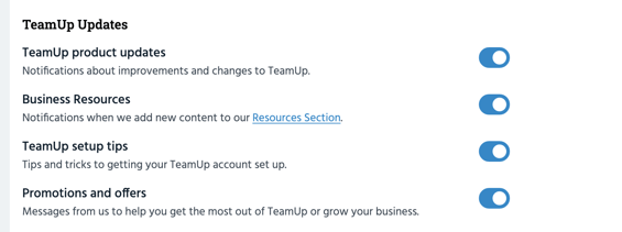 We'd also like to keep you updated on things happening in TeamUp from time to time, such as product updates and setup tips.
