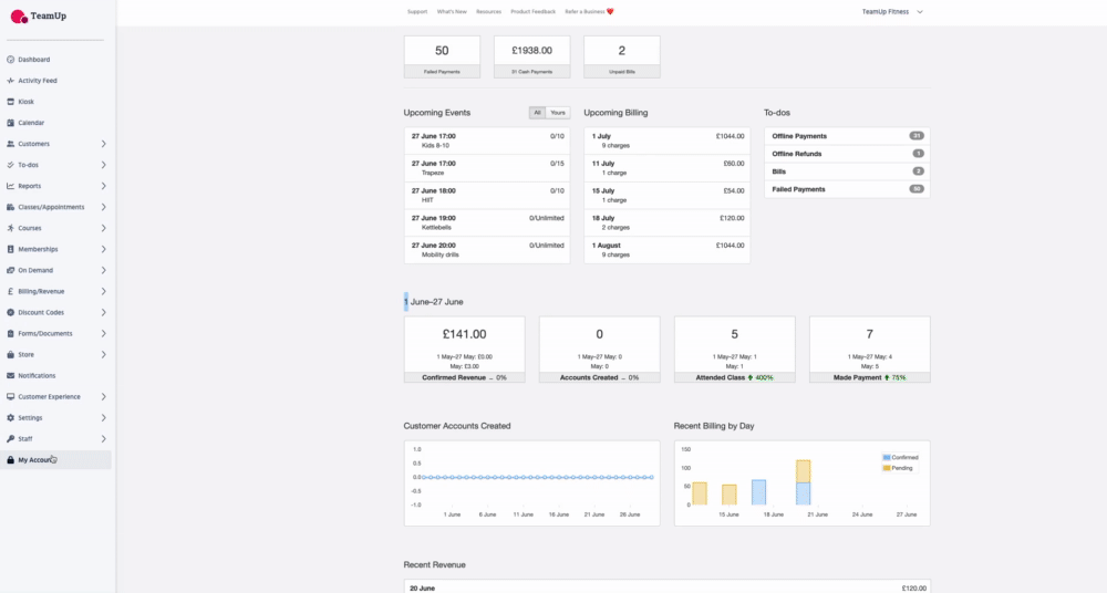 TeamUp will send you notifications based on your staff permissions