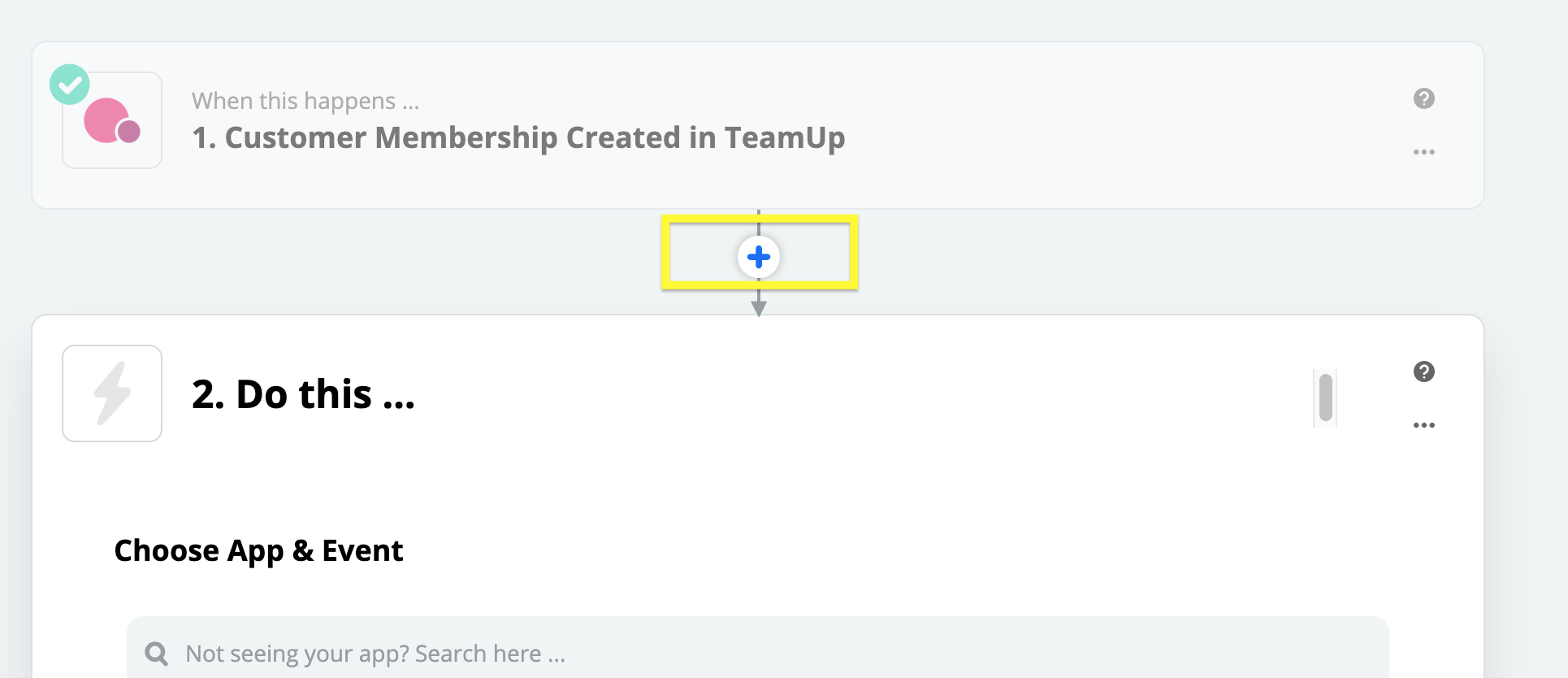 Click the '+' between step 1 and step 2: