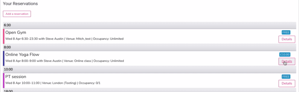 Right after they book a class, they'll see an 'Open video stream' button in the class details. When they click this button, they'll be taken straight to the Zoom meeting if the class starts in under 15 minutes, or to a video stream holding page if the class starts in more than 15 minutes. We'll see how this works in more detail later on in this guide.
