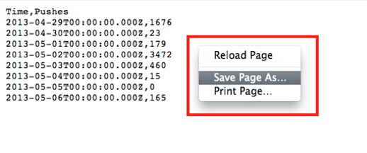 To save the file, right-click (or control-click) on the page, and select "Save Page As":